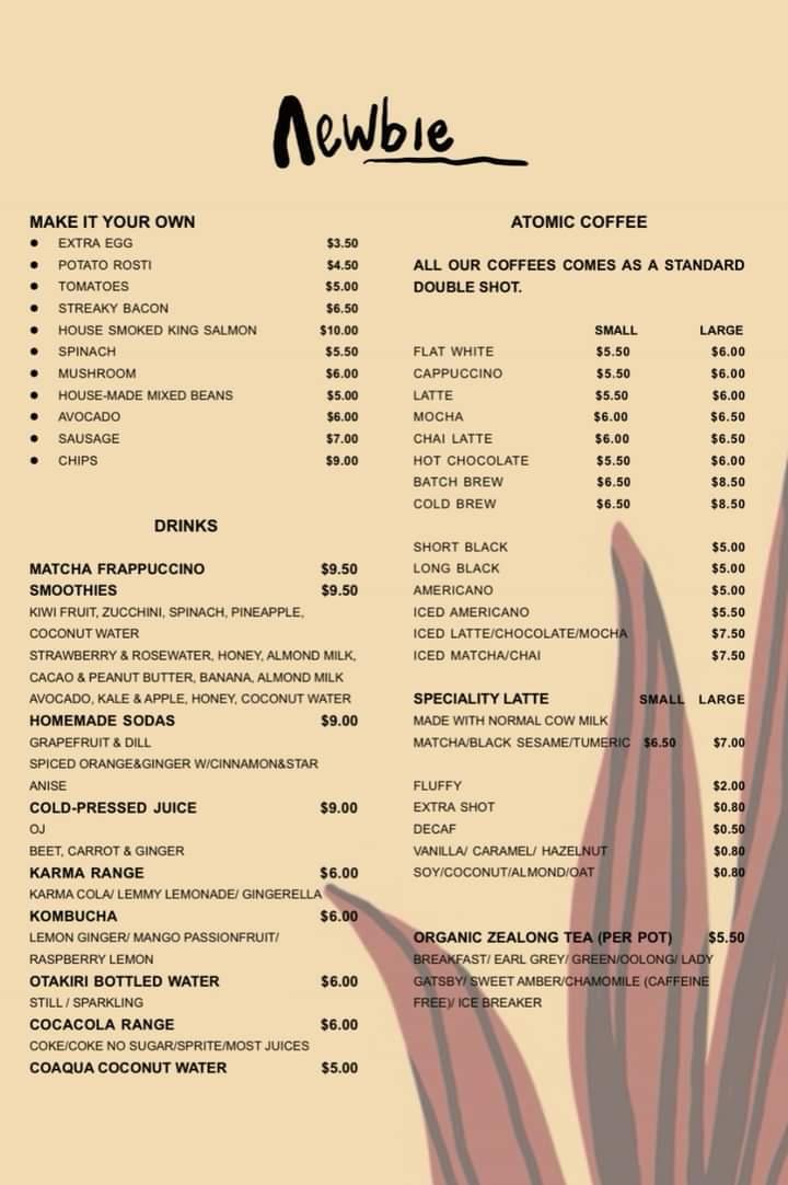 Welcome to Newbie, a charming café nestled at 33 Broadway, Newmarket, Auckland. This quaint spot has quickly made a name for itself, attracting coffee lovers and food enthusiasts alike. The menu is diverse, featuring tantalizing options such as the Ham Club Sandwich for NZ$5.00 and the hearty Red Wine Beef Pie and Dark Beer Lamb Pie for NZ$12.50 each.
