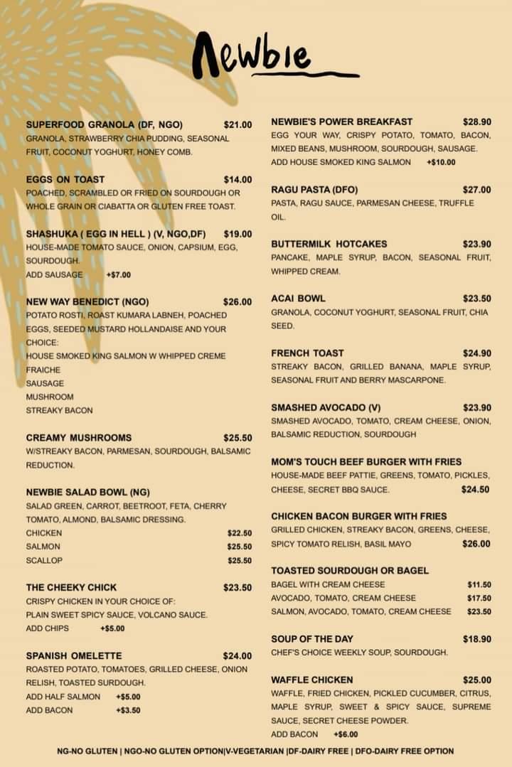 With glowing reviews for its cozy ambiance and attentive service, Newbie is deemed a true gem. Patrons rave about the exquisite presentation and bold flavors of each dish. Whether you're indulging in a generous serving of Shakshuka or savoring a perfectly brewed coffee, every visit promises to exceed expectations.